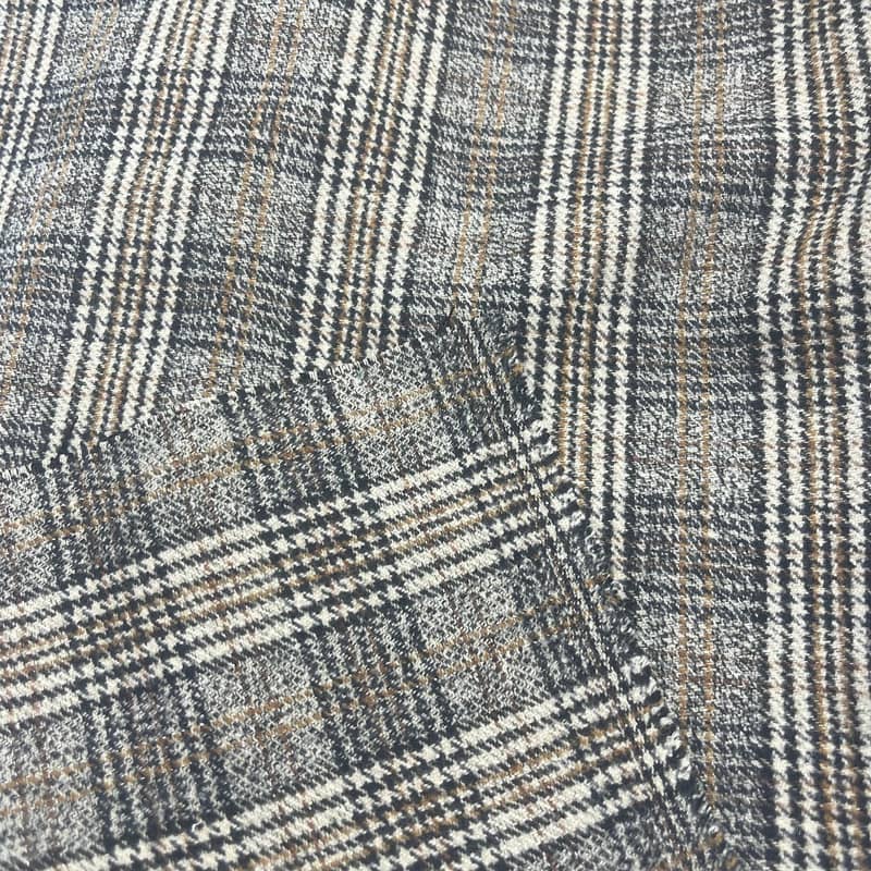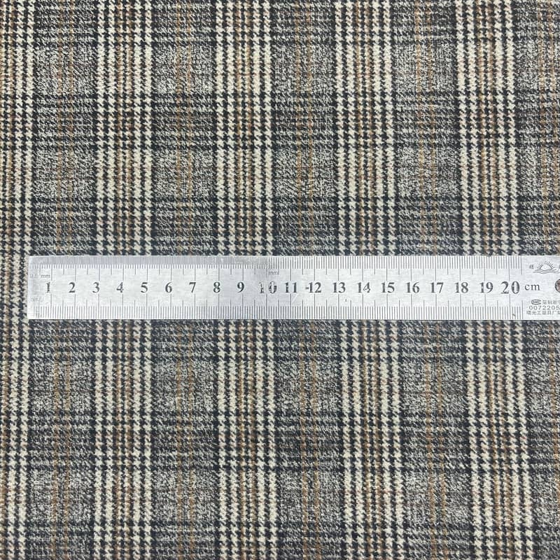 Fabrica haec, ut articulus 250515 designata, textile contextum est ex 20% lana, 75% polyester, et 5% spandex. Cum massa per unitatem areae 450g/m, constructionem medium-pondus aptam congruentem exhibet. Notae fabricae plastae et caninae integrae formas reprimunt in brunneo, elementis metallicis tinctis pro visuali antithesi incorporatione. Inclusio spandex circiter 20-25% extensionis horizontalis facultatem praebet, dum lana et polyester mixtio structurae stabilitatem conservat. Haec compositio fibrarum compositionis et texendi ars fabricam definitam elasticitatis et exemplaris definitionis efficit, eamque aptam facit ad vestis hodiernis formandam, quae tam mobilitatem quam aestheticam requirunt.