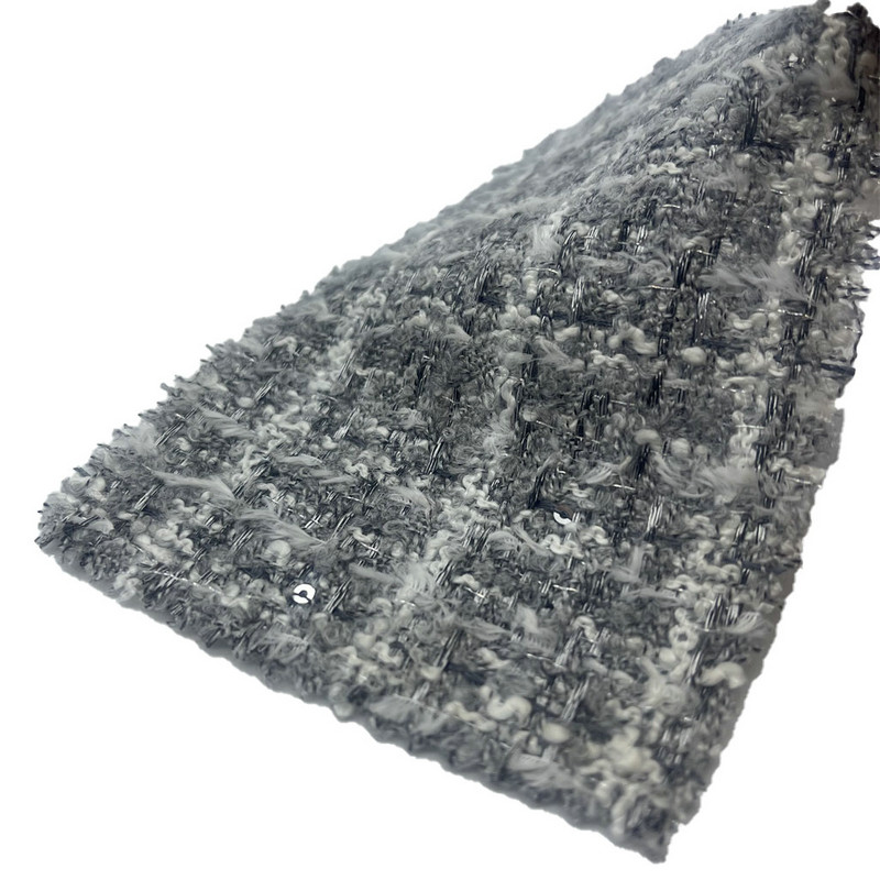 Fabrica haec, ut articulum 23503 designata, est textile iucundum compositum ex 49% acrylicis, 40% polyester, 7% lana, 4% nylon. Cum massa per unitatem regionis 335 gsm, leve pondus constructionem adhuc structam exhibet. Superficies notae tenuis griseo exemplaris imitatus, per processum caelatum, qui subtilis textura in fabricam elevata creat. Haec ars adicit visivae altitudinem textili sine alteratione basin textili. Multi- fibra mixtio stabilitatem polyester coniungit, mollitiam acrylicum, tactum naturalem lanae, et vetustatem nylon. Hae notae fabricam faciunt aptam vestimentis mulierum ubi cura accurata exemplaria ac tangentia requiruntur.